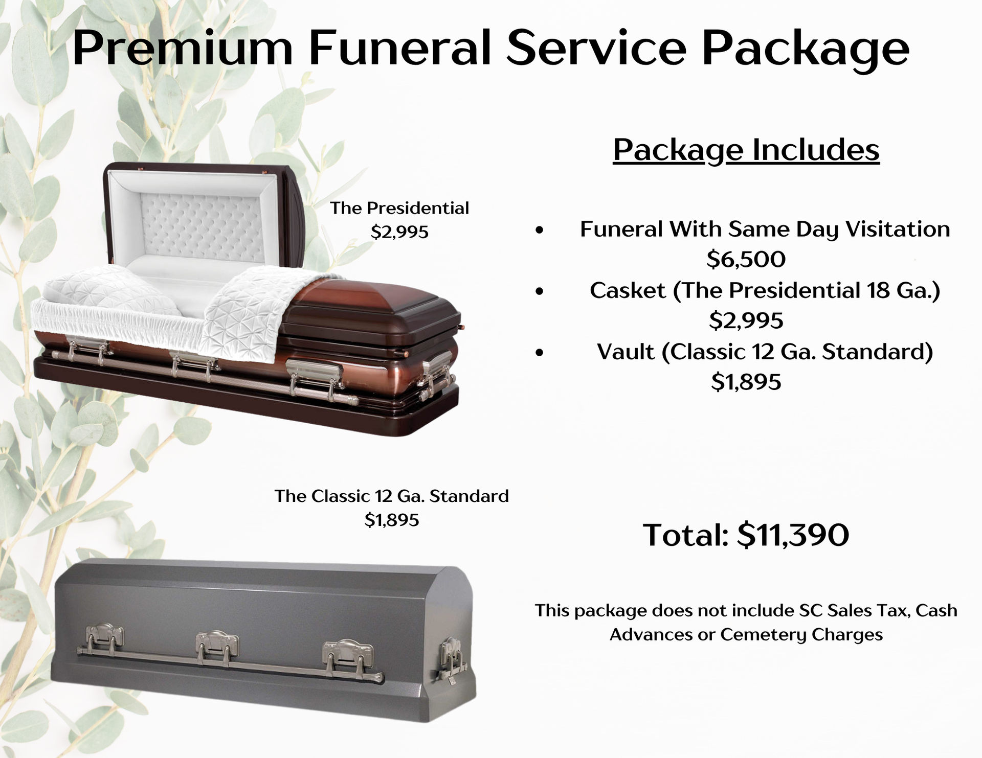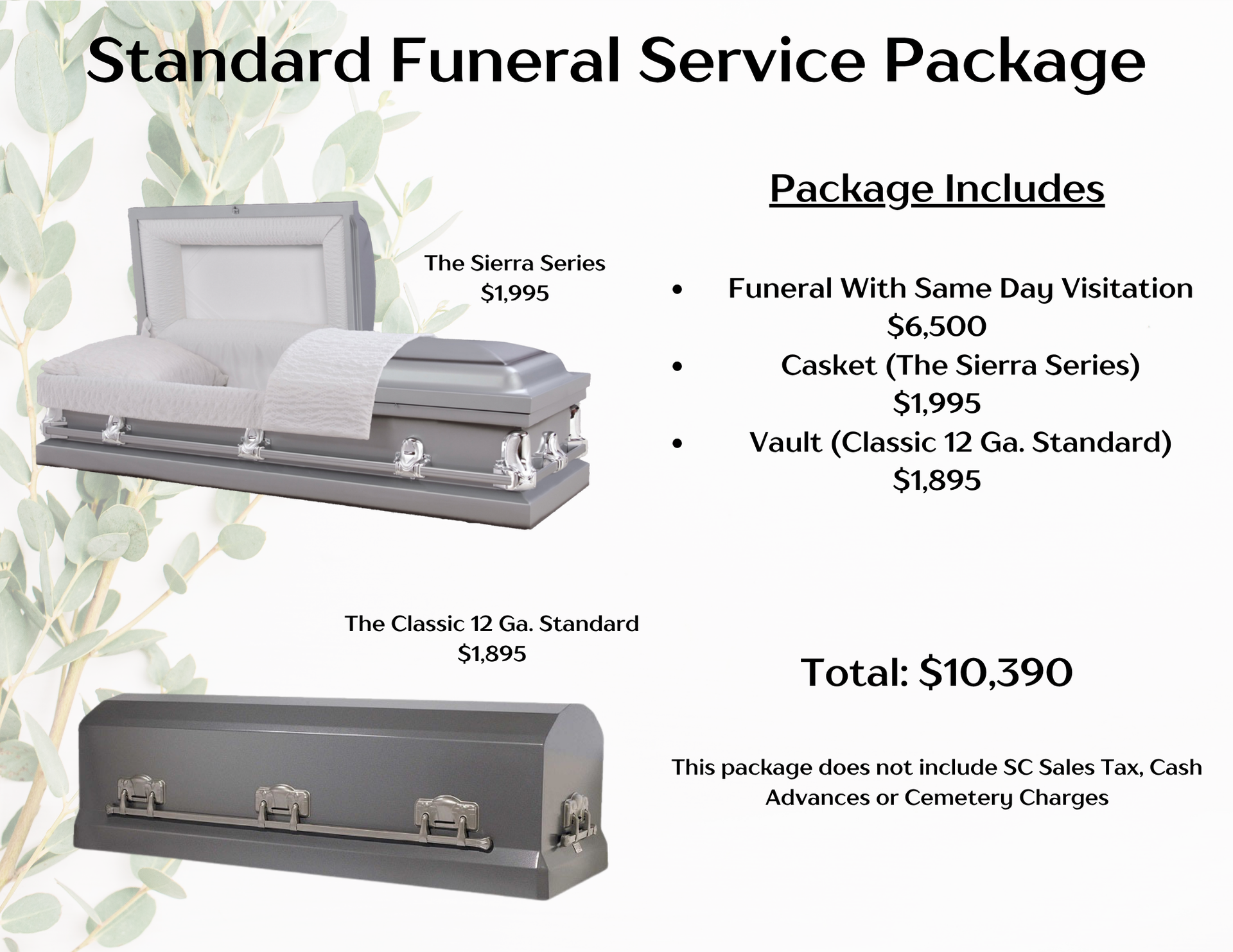 Below are our packaged price funerals. Please call for more information. Click here for a copy of our General Price List.