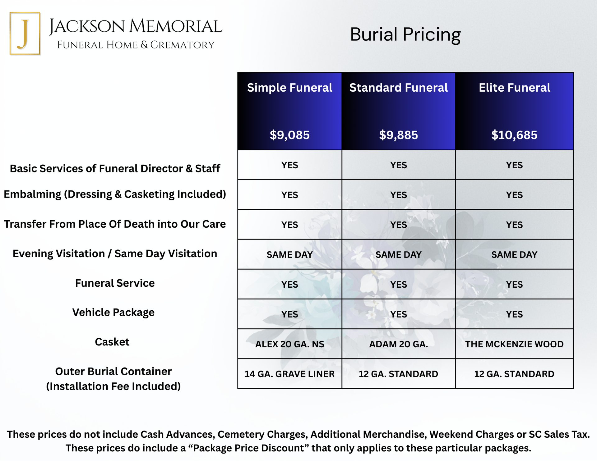 If you choose our traditional service we will work with you to help create a meaningful tribute to your loved one. Our Traditional Service includes a viewing or visitation, a ceremony, and burial.